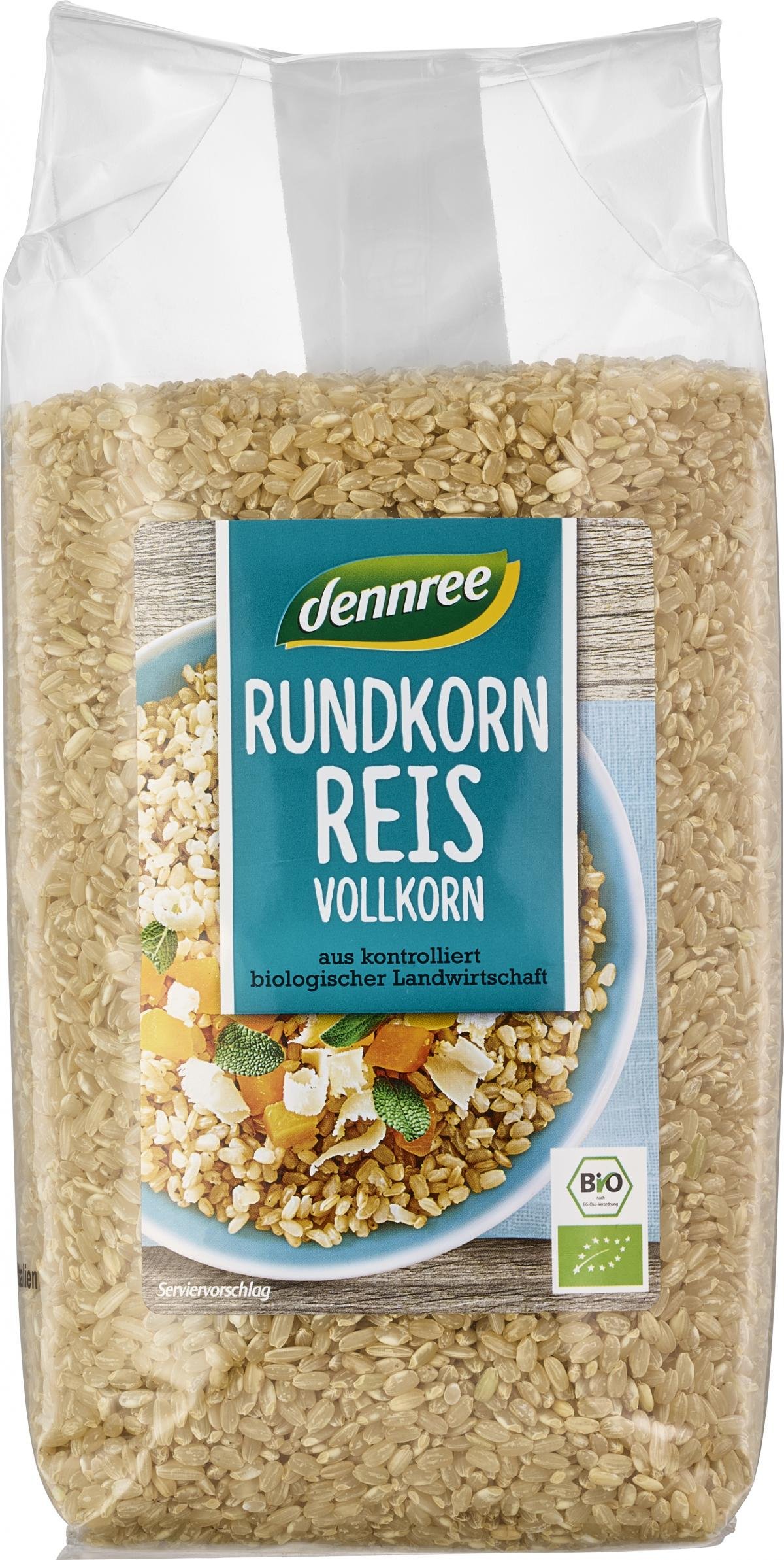Der dennree Rundkornreis Vollkorn wird nach der Ernte nur gereinigt und entspelzt. Keimling und Silberhäutchen bleiben somit erhalten. Dieser aromatisch-nussige Reis bleibt beim Kochen locker und körnig. Genießen Sie den dennree Rundkornreis Vollkorn in Risottos und Aufläufen.