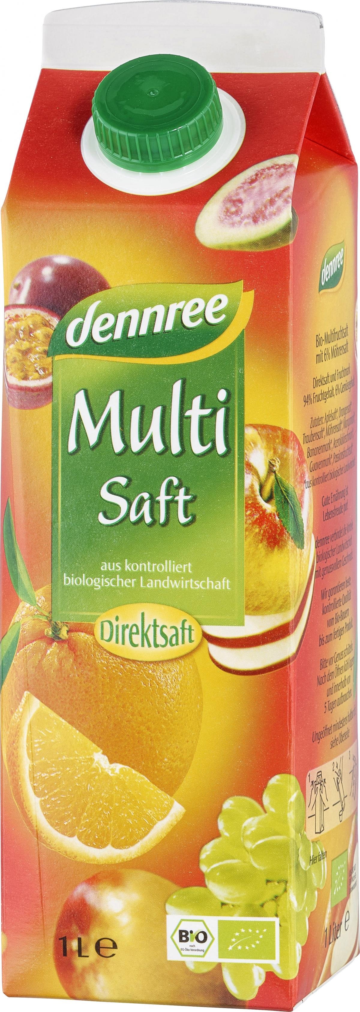 Bio-Multisaft bietet reinen Genuss. Ein leckeres Geschmackserlebnis - die Mischung macht´s. dennree Multisaft ist eine gelungene Komposition aus Apfel-, Orangen-, Trauben-, Passionsfrucht- und Möhrensaft, fein abgestimmt mit Fruchtmark von Bananen, Mangos, Acerolakirschen und Guaven. Genießen Sie die fruchtige Vielfalt.