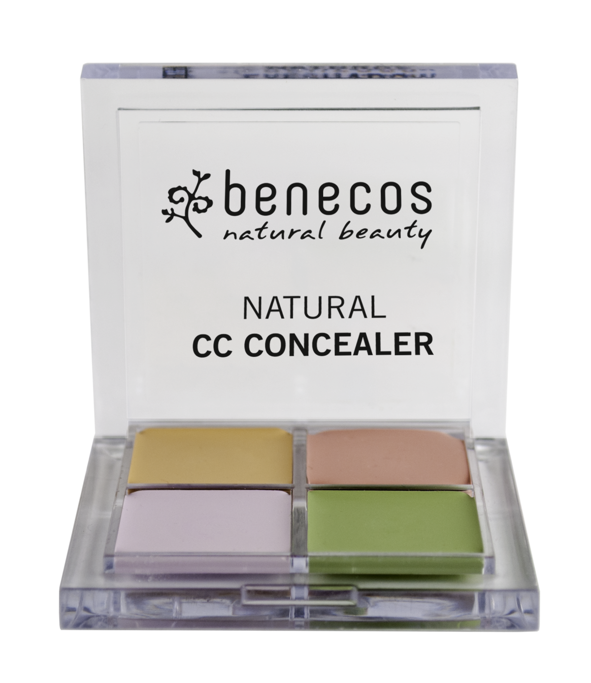Die benecos NATURAL CC Concealer Palette bietet 4 Farbtöne, mit denen Unregelmäßigkeiten im Teint kaschiert werden können:
