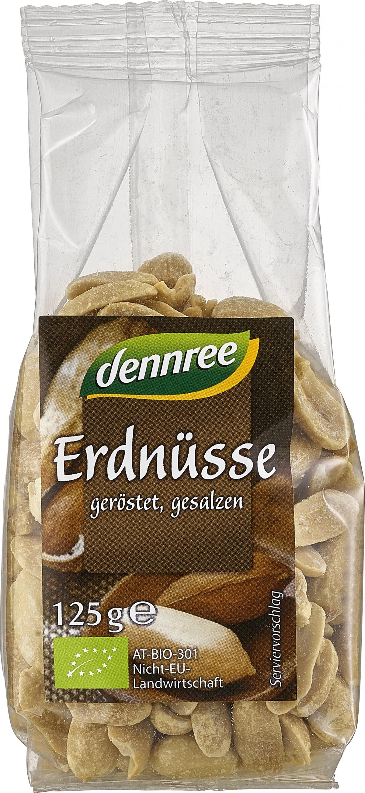 dennree Erdnüsse, geröstet & gesalzen, 125 gr Pack