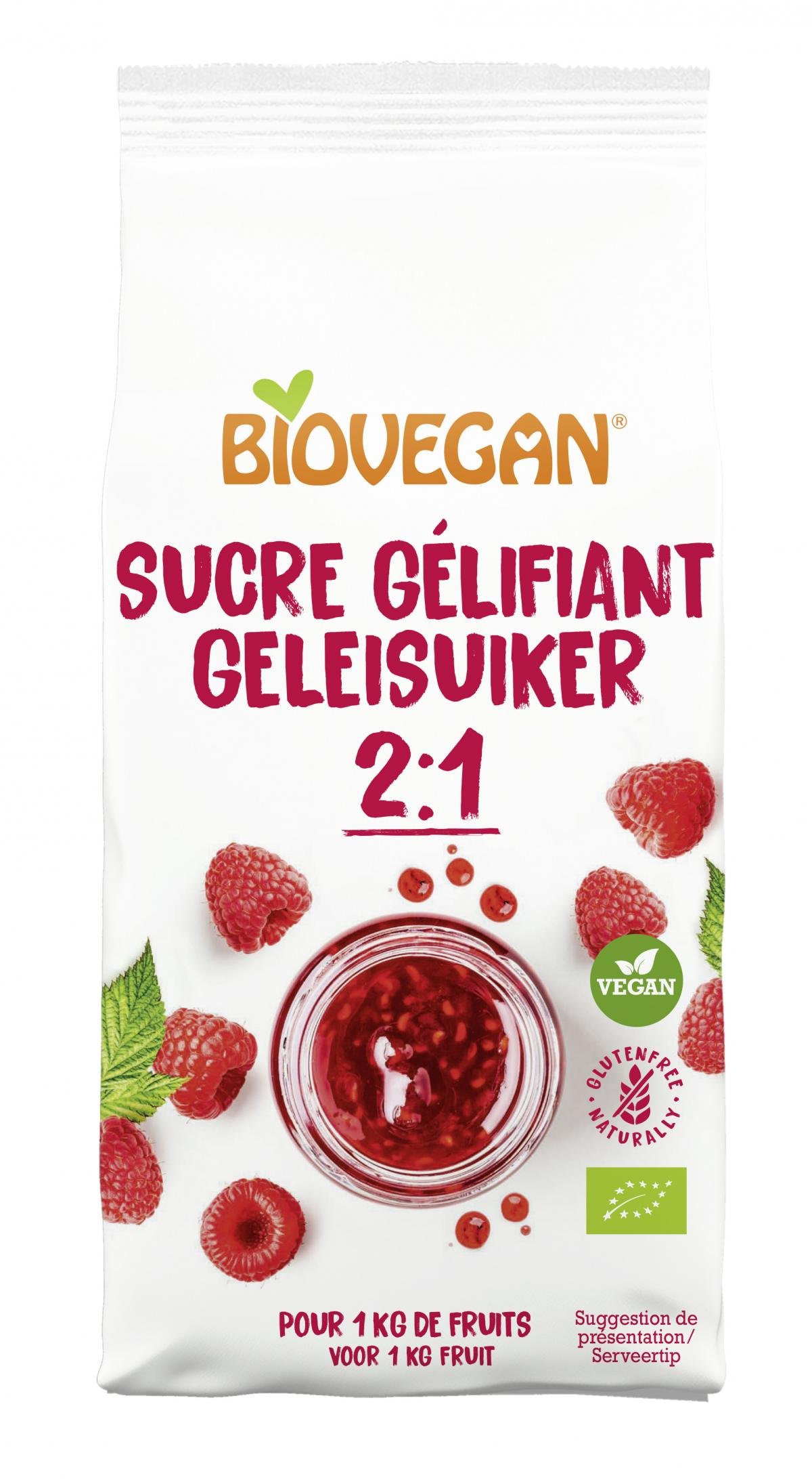 BIOVEGAN Gelierzucker 2:1 für klassische Fruchtaufstriche aus 2 Teilen Frucht und 1 Teil Zucker. Eine Packung Gelierzucker geliert 1 kg Früchte. Für Fruchtaufstriche oder Gelees mit langer Haltbarkeit. Besonders feiner Rohrohrzucker sorgt für die optimale Löslichkeit und einen ausgewogenen Geschmack. Probieren Sie selbst.