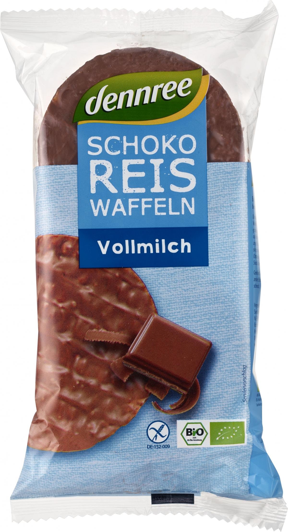Bio-Schoko-Reiswaffeln bieten reinen Genuss. Die dennree Schoko-Reiswaffeln Vollmilch werden aus Vollkornreis gebacken und mit einer Schicht aus Vollmilchschokolade überzogen. Die knusprigen Waffeln sind pur sowie zu Fruchtjoghurt, Obstmus oder Eis ein leckerer Snack für zwischendurch. Genießen Sie den zartschmelzenden Schokoladengeschmack.