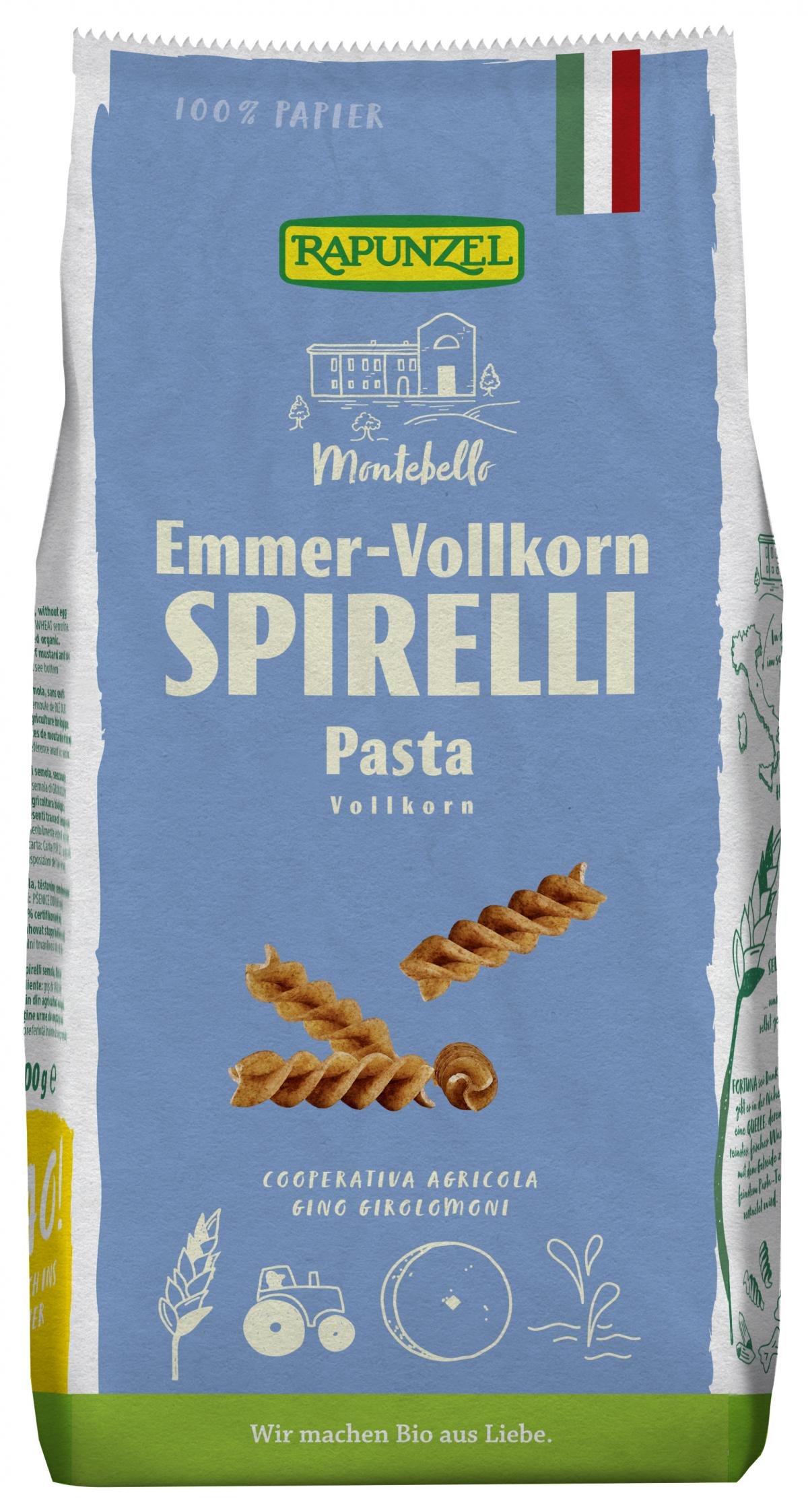 Nudel in Spiralform - eine der beliebtesten Sorten der italienischen Küche. Pasta - in reiner Emmerqualität mit fein nussigem Geschmack. Das Ur-Korn ist ideal für die Herstellung bester Pasta! Sein festes Korn gibt der Nudel den perfekten al dente-Biss und ein ausgezeichnetes, leicht nussiges Aroma.