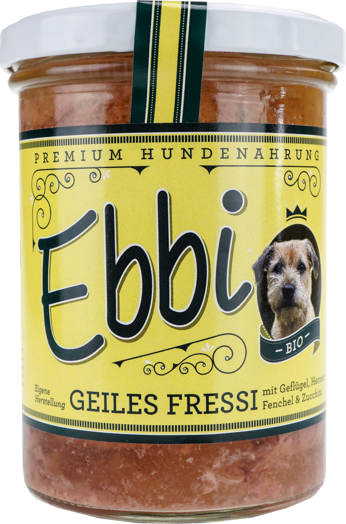 Bio Hundenahrung im Glas aus eigener Herstellung mit offener Deklaration - ohne Verwendung von Konservierungsmitteln, Füll- und Lockstoffen, Aromen und Farbstoffe, Zucker und Geschmacksverstärker sowie Tiermehle.