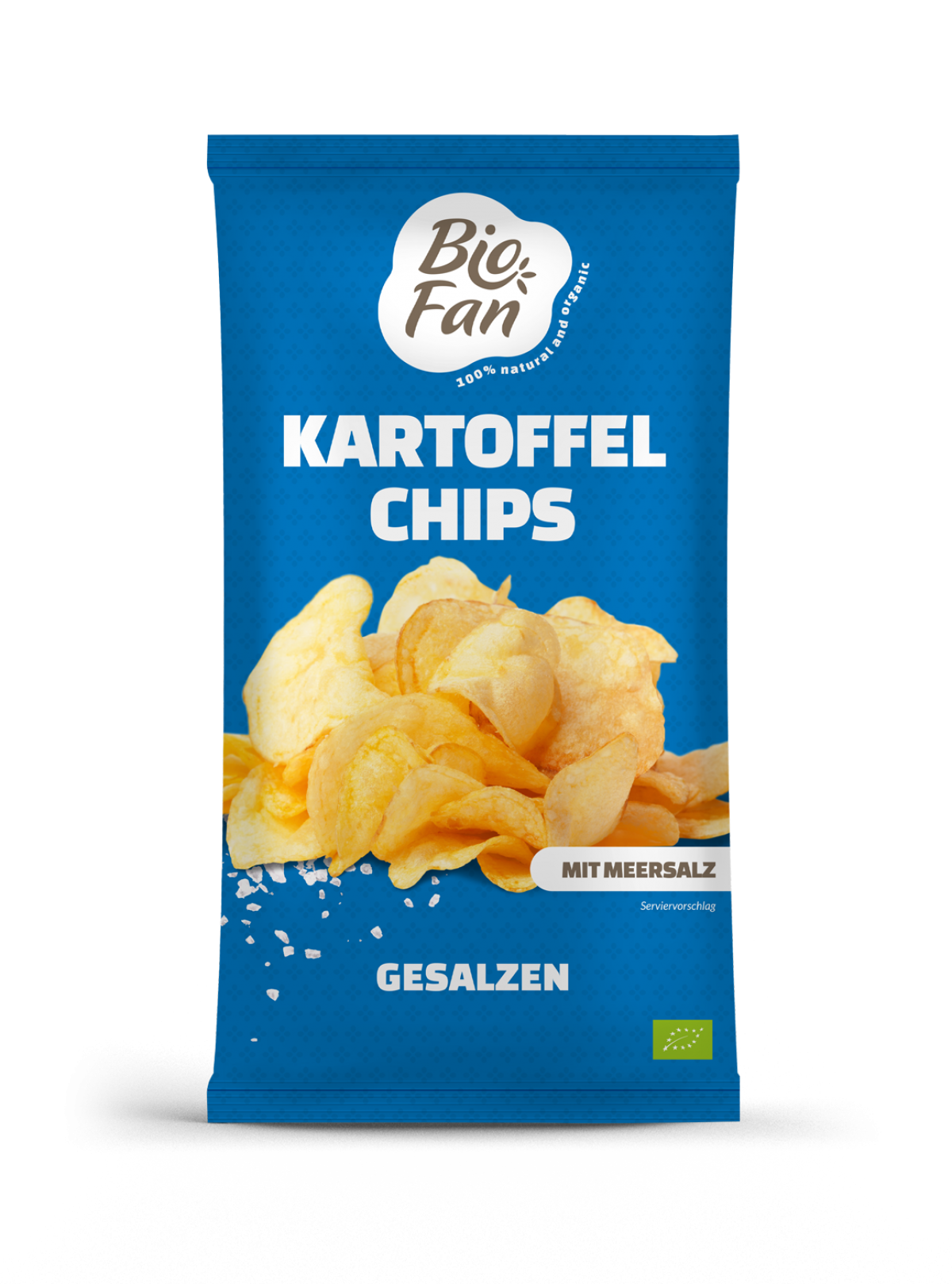 Biofan Chips Natural sind leckere Feinschnitt-Kartoffelchips mit Meersalz