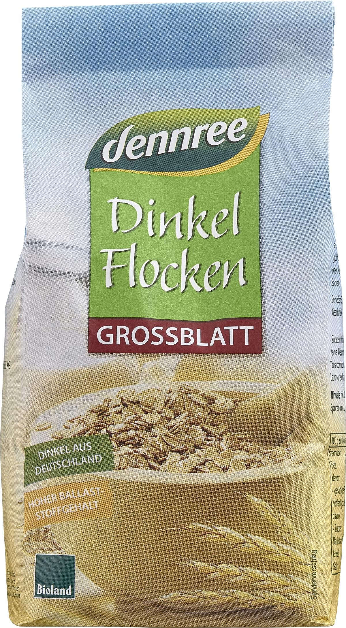 dennree Dinkelflocken Großblatt, 500 gr Packung