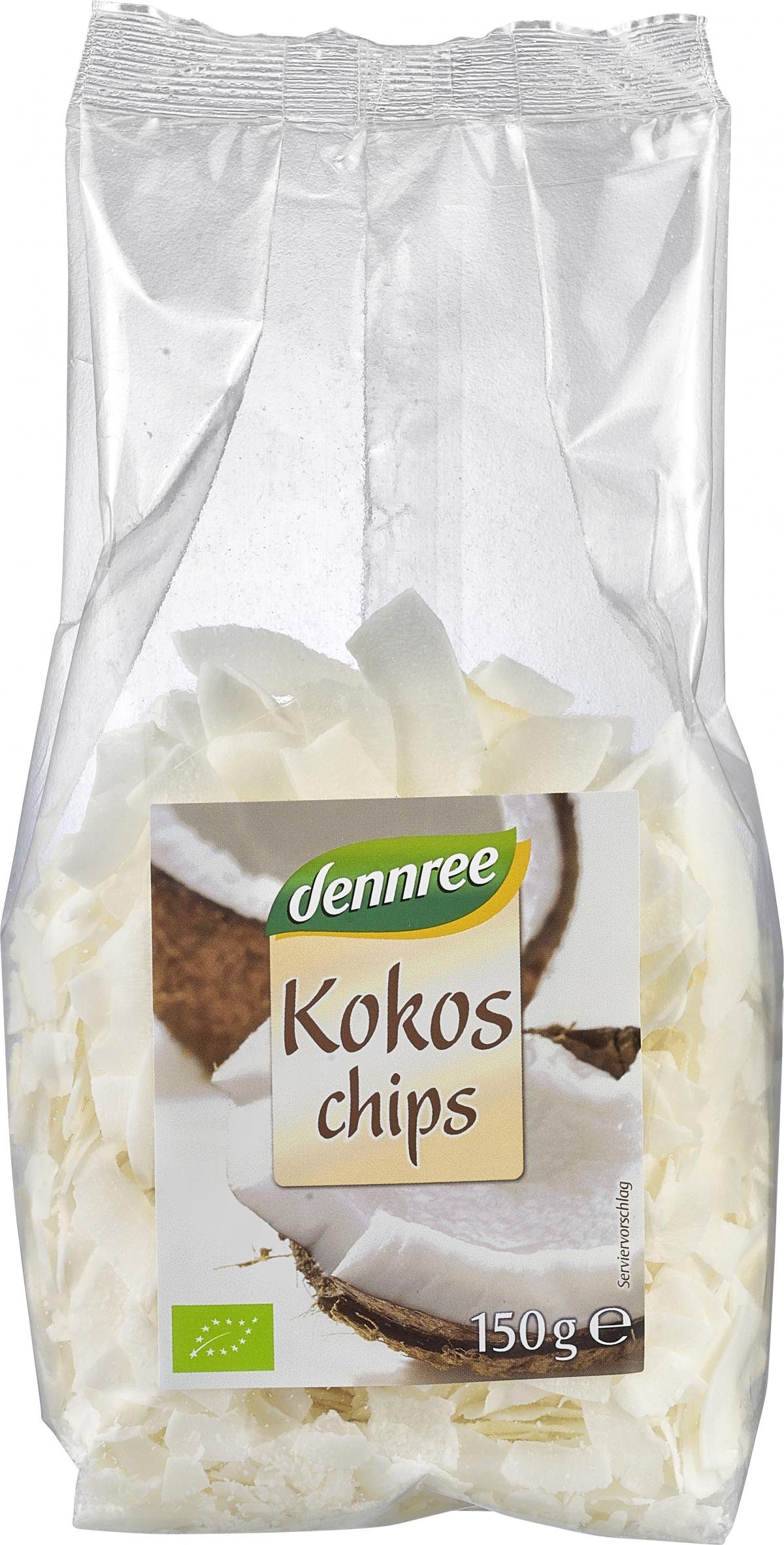 dennree Kokoschips, ungesüßt, 150 gr Packung