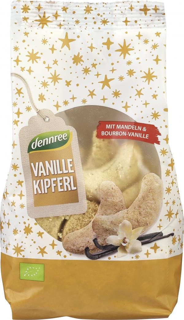 Die dennree Vanillekipferl werden mit Butter, gemahlenen Mandeln und echter Bourbon-Vanille hergestellt.