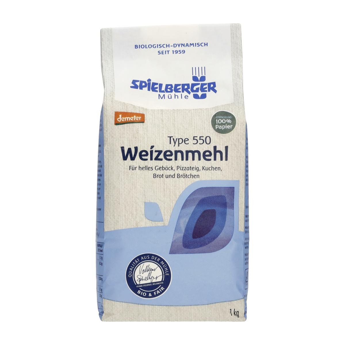 Für das Weizenmehl 550 wird bester demeter-Weizen verwendet. In der Spielberger Mühle wird das Getreide in mehreren Schritten mit größter Sorgfalt und Fingerspitzengefühl zu diesem besonders vielseitig verwendbaren, hellen Mehl vermahlen.