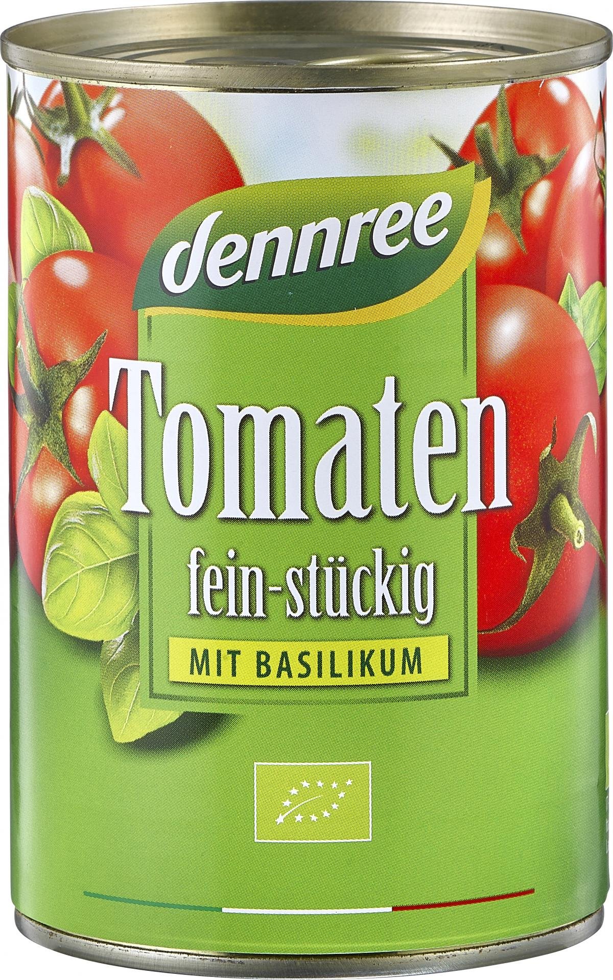 dennree Tomaten fein-stückig mit Basilikum, 400 gr