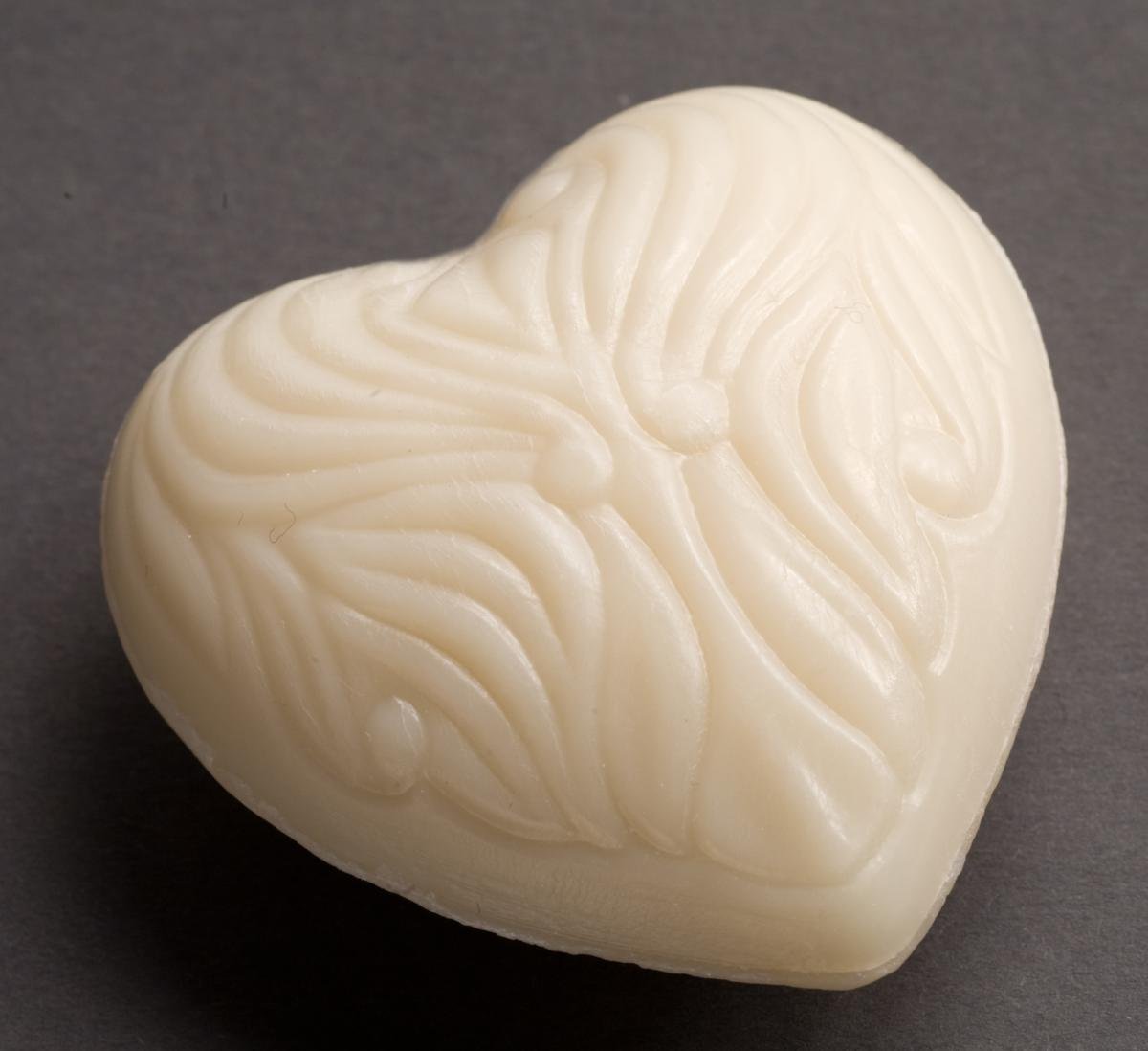 Schafmilchseife "Herz weiß" in der Faltschachtel mit Sichtfenster -cosmos organic zertifiziert -hergestellt in Deutschland -unter Verwendung von Fetten und Ölen aus kontrolliert biologischem Anbau -Duftkomposition aus ätherischen Ölen