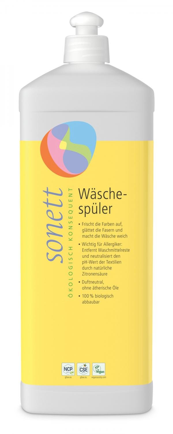 Für alle Textilarten und Waschprogramme geeignet. Dem letzten Spülwasser beigeben. Der Sonett Wäschespüler hilft Seifenreste ausspülen und neutralisiert das Spülwasser (wichtig für emp?ndliche Menschen). Er frischt die Farben auf, glättet die Fasern und macht die Wäsche weich. Vorsicht: nicht auf kalkhaltige Oberflächen bringen, wie z. B. Marmor, Kunststein, Beton, Kalkstein usw.