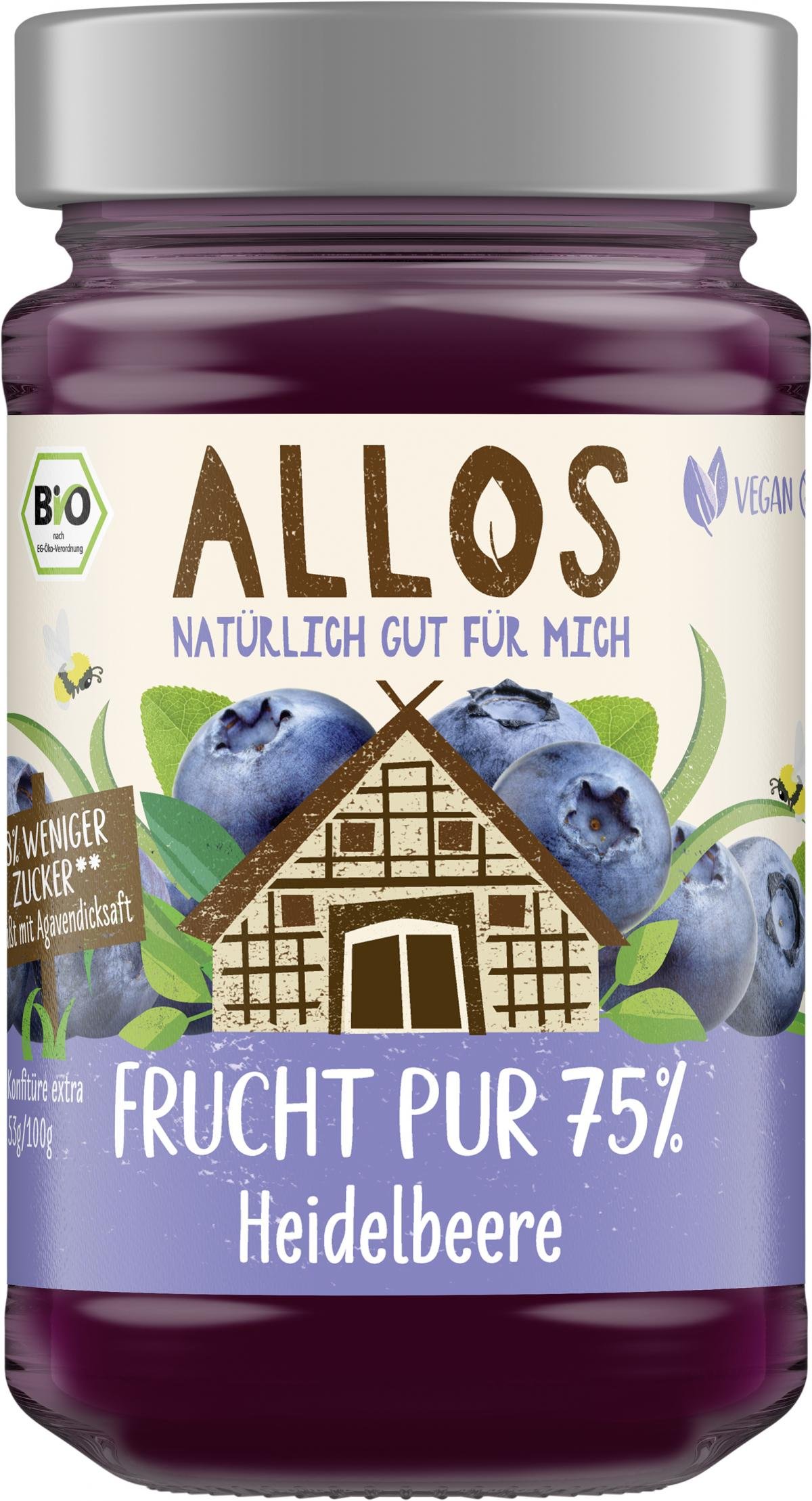 Allos Frucht Pur Heidelbeere, 250 gr Glas -75% Fru